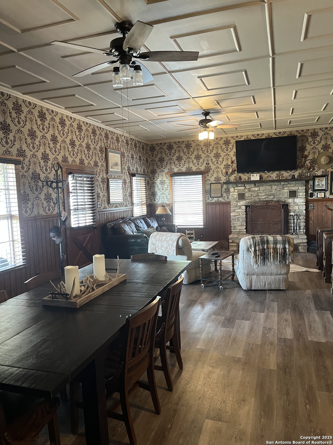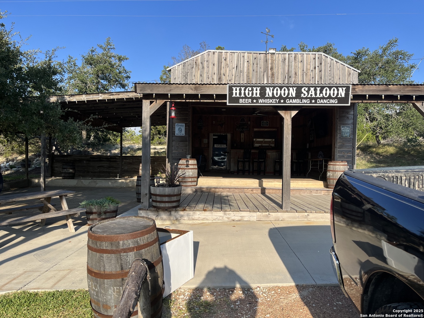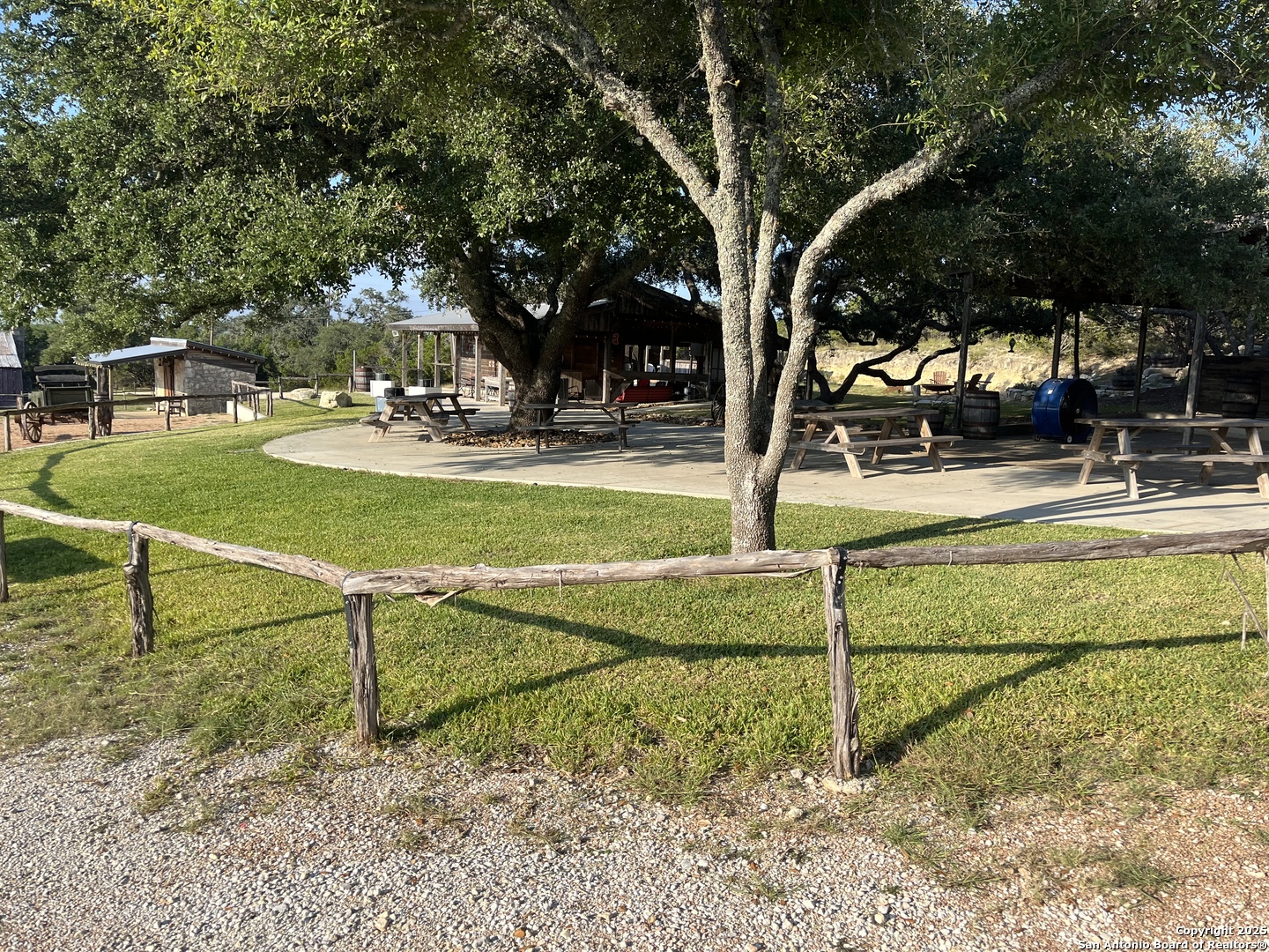Welcome to The Prescott Ranch. Nestled at the heart of the Texas Hill Country in Blanco, TX this one of a kind property is straight out of the old west! The Prescott Ranch is a multi-use property that has a multitude of possibilities ranging from a retreat, corporate events, short term vacation rental, wedding venue, or a private hunting oasis. The Ranch is a turn key paradise waiting to serve its new role either as income producing or recreational. The Prescott Ranch sprawls over 121 acres of prime Texas land. The ranch has a variety of landscapes to offer. From high altitude build sites, to open fields and two year round ponds, there isn't much this property lacks when it comes to views. The structures on the property are arranged in the fashion of an old western cowboy town. Each individual faux business is a different bedroom with its own full bath, with the first room having a living area, dining space, and full kitchen. This one structure is fully air conditioned and can accommodate groups of up to 20 people! the jailhouse is also equipped with two bedrooms that have bathrooms attached. The original home from the early 1900s is still in tact and is currently being used as yet another bedroom with bunkbeds. Stepping out of each bedroom leads you into the main open area where you are greeted with the outdoor saloon and dance floor! further down the path you will find the meat smoking area with walk in cooler and outdoor kitchen to really enjoy those cool Texas afternoons we have coming in. Scattered throughout the ranch are a handful of hunting blinds and feeders, there have been several whitetail deer taken in the last few years and Axis, Fallow, and even Elk have been spotted roaming the property recently, giving the Prescott ranch the gift of year round hunting! Mineral rights are negotiable for this property, all furniture and most decorative items will convey but tractors and equipment do not. Currently under ag exemption. Thank y'all for the interest in this magnificent property and please come see what the majestic Texas hill country is all about!