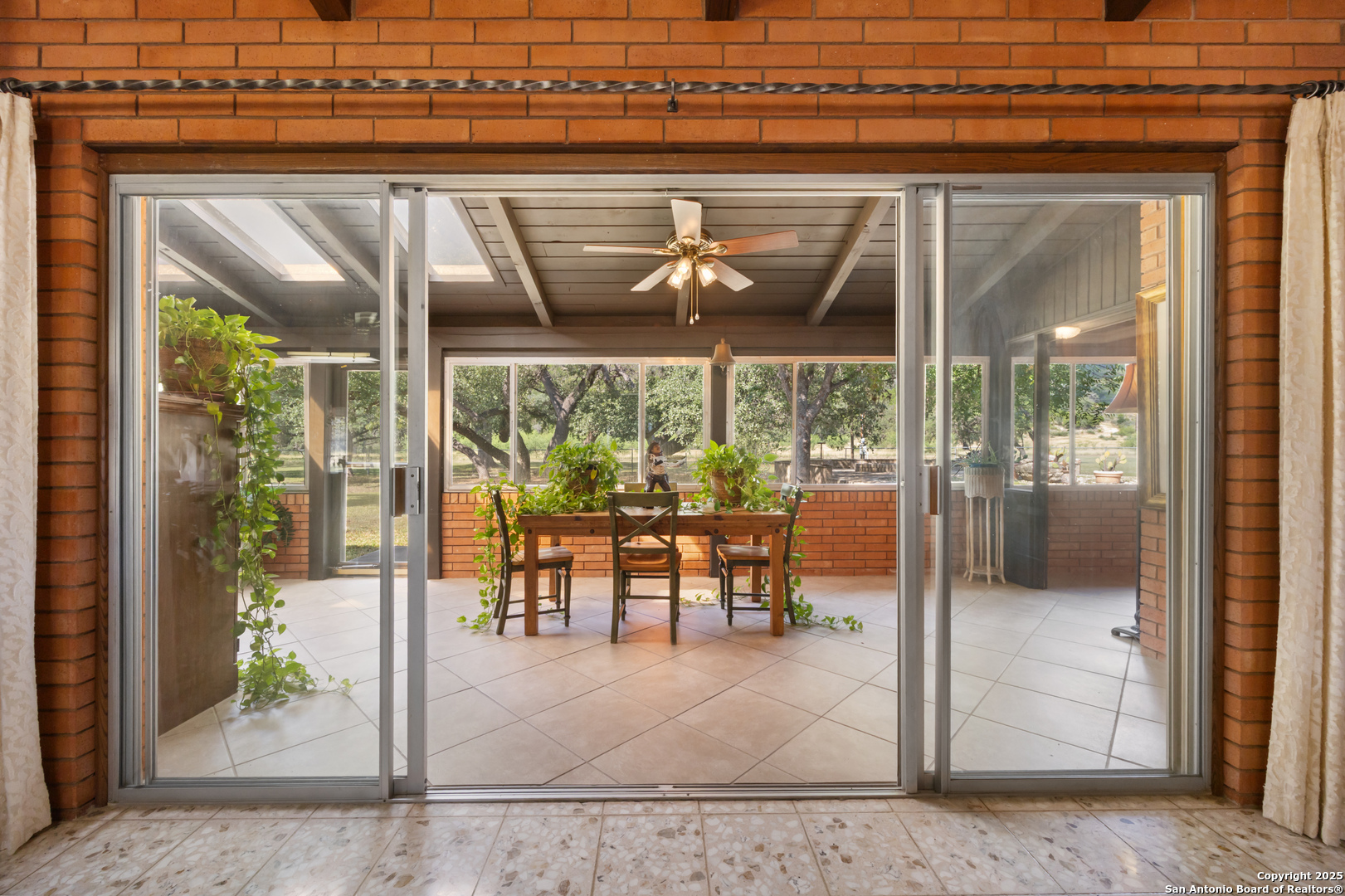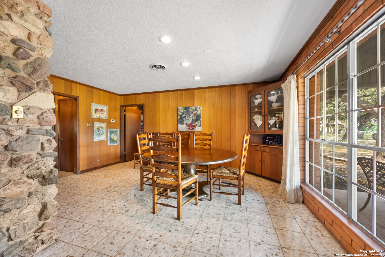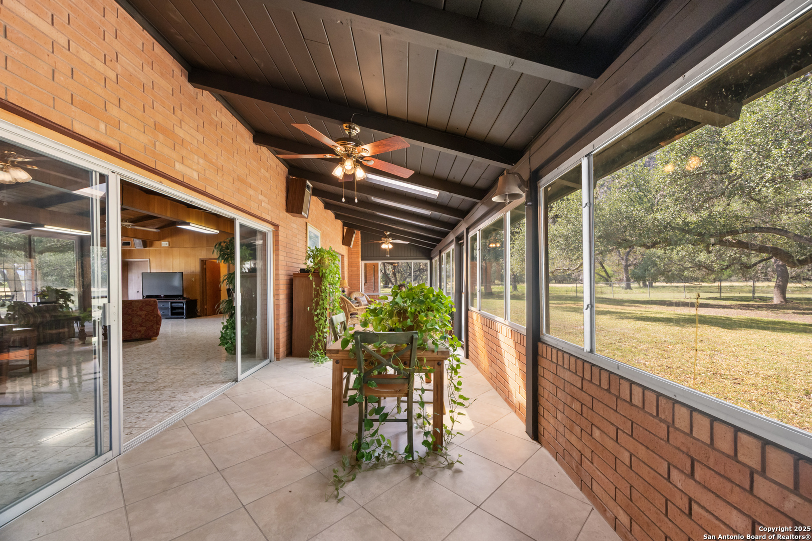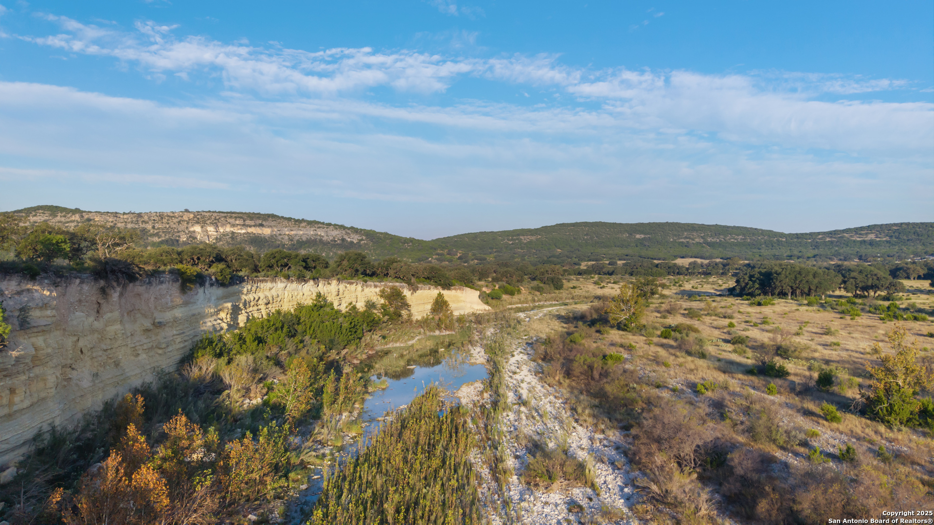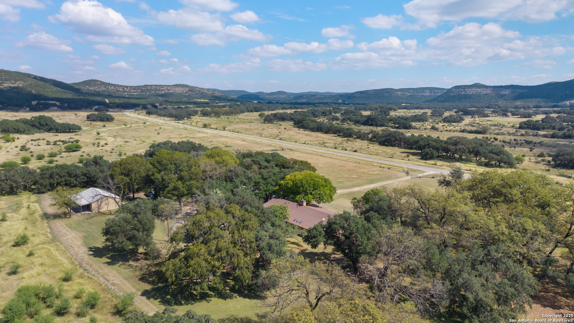 DESCRIPTION: The Diamond J Ranch is made up of 455.59 acres, offering a nice blend of live water, scenic beauty, and high-quality improvements. Bisected by Bullhead Creek, a strong-flowing tributary of the Nueces River, the ranch showcases classic Hill Country character - rolling pastures, wooded creek bottoms, and rugged hillsides. Native pecan and live oak motts line the banks, while native grasses and cedar provide excellent cover for wildlife. With its combination of agricultural production, recreational appeal, and comfortable residential improvements, the ranch offers both function and retreat in a private yet accessible setting. LOCATION: Situated about one mile northeast of Vance and seventeen miles southeast of Rocksprings, the Diamond J Ranch fronts both sides of RR 2631 in western Real County, near the Edwards County line. The property lies within the Nueces Canyon region and is easily reached via FM 335 from Highway 41 or FM 336. TERRAIN: Topography ranges from approximately 1,640 feet along Bullhead Creek to around 1,920 feet at the western ridges. The land transitions from gentle rolling pastures near the creek to more rugged uplands offering dramatic views of the surrounding canyons. Soils consist primarily of Dev River Wash and Campwood-Knippa complexes - rocky, well-drained, and ideal for wildlife and livestock management rather than cultivation. IMPROVEMENTS: The primary residence is a single-story lodge of approximately 4,868 sq ft featuring five bedrooms, three and a half baths, a large great room with vaulted ceiling and wood-burning fireplace, formal dining, and a well-equipped kitchen with built-in appliances. Interior finishes include tile and carpet flooring, wood paneling, and textured drywall, with ceiling fans throughout. A covered front porch, enclosed sunroom, and rear patio with a fire pit provide ample outdoor living space. The former in-ground pool has been converted into a rock garden, adding character to the landscaped yard. Nearby are two detached three-car garages-one featuring guest quarters with a full bath-plus a well house, storage facilities, and other ranch infrastructure. The property is fenced and cross-fenced, with pasture roads providing access across the ranch. All structures are in good condition, well maintained, and positioned to take advantage of the scenic surroundings. WATER: Bullhead Creek runs through the property with clear, year-round flow and deep pools framed by sycamore and pecan trees - a rare and highly desirable Hill Country attribute. Additional wet-weather draws supplement the natural water system, and the ranch also benefits from private water wells serving domestic and livestock needs. The combination of surface and ground water resources supports both wildlife and residential use throughout the property. WILDLIFE: The ranch supports a thriving population of white-tailed deer, axis deer, aoudad, blackbuck, antelope, and hogs, along with occasional turkey and other native species. The mix of hardwoods, brush cover, and native grasses creates excellent habitat, making the property ideal for hunting and wildlife management. SUMMARY: Diamond J Ranch represents a rare live-water offering in the heart of the Texas Hill Country - a property where recreation, livestock production, and relaxation converge. With paved access, established infrastructure, and spectacular natural features along Bullhead Creek, the ranch is ideally suited for continued use as a residential and recreational holding or for future family estate development.