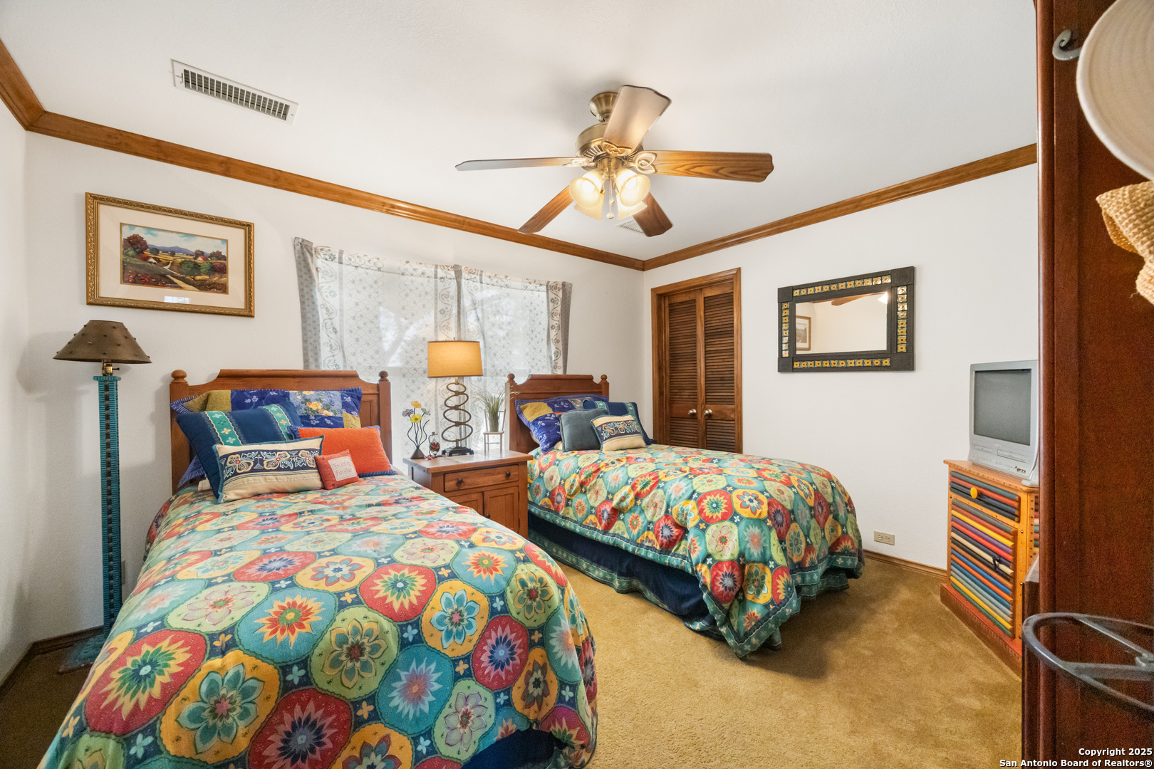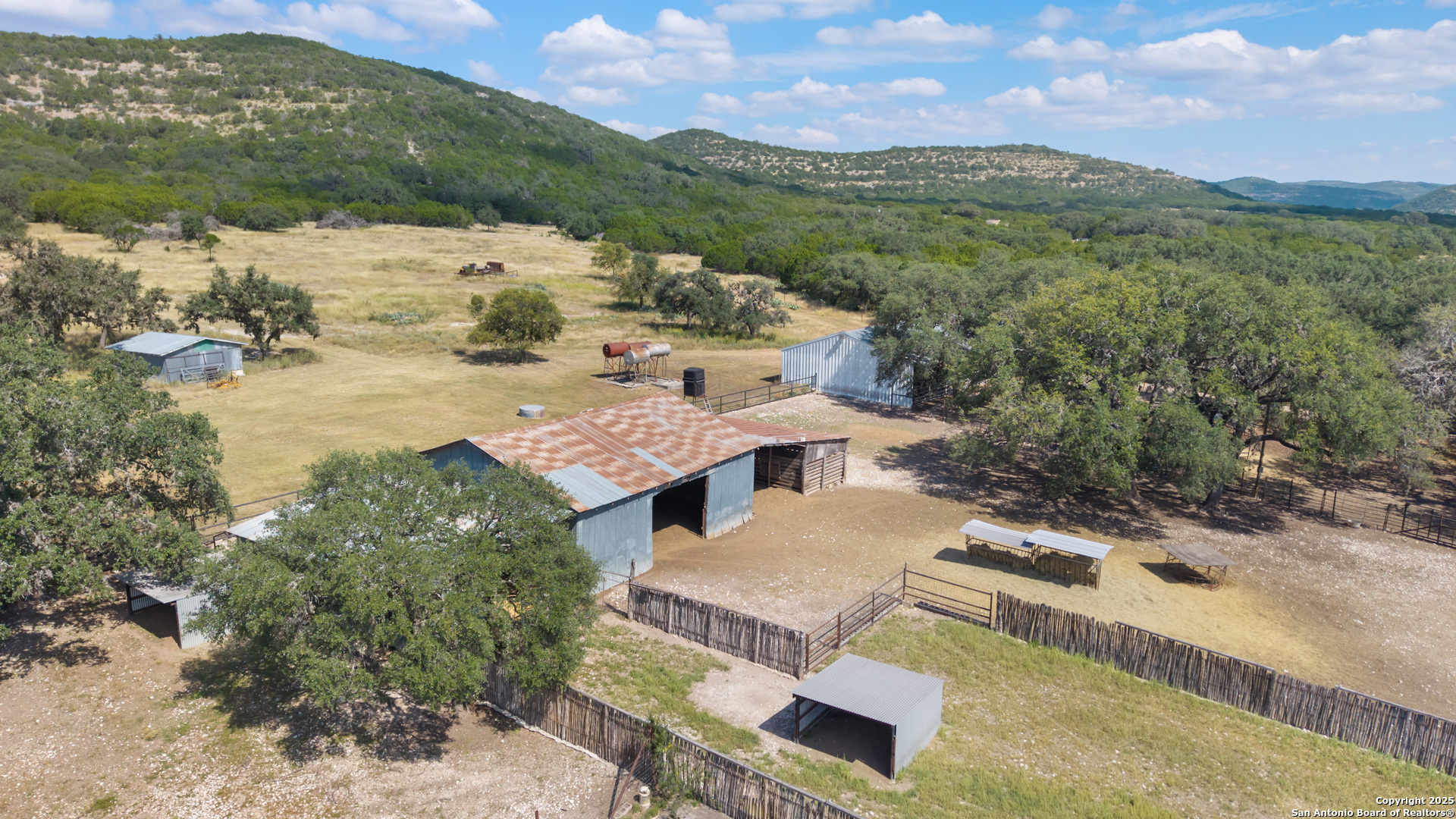 DESCRIPTION: Henry Ranch is a scenic Hill Country property encompassing approximately 810.58 acres of diverse and picturesque land. The ranch offers a balance of recreational appeal and agricultural utility, highlighted by the presence of Bullhead Creek, a clear, spring-fed waterway that meanders through the property. Native pecan groves and stands of live oak line the creek, creating a beautiful and functional habitat for livestock and abundant wildlife. The ranch is perimeter and cross-fenced, with pasture roads that allow easy access throughout. With its mix of rolling terrain, usable bottomland, and live water, Henry Ranch represents an exceptional blend of natural beauty and ranch practicality. LOCATION: The property lies in the far western portion of Real County, about 1.2 miles northeast of Vance, Texas, and 17 miles southeast of Rocksprings. It fronts on both sides of RR 2631 near the junction with FM 335, providing excellent paved-road access. Although legally within Real County, the ranch is more closely associated with Edwards County due to proximity and travel routes. The location offers convenient access to nearby Hill Country communities, including Camp Wood, Leakey, and Rocksprings, while larger cities such as Kerrville, Uvalde, and San Antonio are within reasonable driving distance for supplies, dining, and regional services. TERRAIN: Elevation on the ranch ranges from roughly 1,680 feet in the southeast to nearly 1,960 feet at higher western points. The land exhibits rolling to rough Hill Country topography, intersected by scenic draws and seasonal drainages that feed Bullhead Creek. Portions along the creek lie within a floodplain typical for the area but contribute to fertile soil and lush riparian growth. Soils consist primarily of Pratley Clay Complex near the creek and rocky Real Oplin Complex outcrops on the uplands. The varied terrain creates sweeping views, excellent wildlife cover, and multiple ideal building sites. IMPROVEMENTS: Improvements are situated on the north side of RR 2631 in a well-developed residential compound. The primary residence is a three-level, 2,756-square-foot stone-veneer home featuring five bedrooms and three bathrooms. The first floor includes a living room with a wood-burning fireplace, dining room, kitchen, mudroom, den with a wood stove. The second floor offers two large bunk rooms with a shared full bath, while the lower level includes a small game room. Covered porches and patios provide shaded outdoor living areas, and a detached utility and storage building includes a secure gun room and a walk-in game cooler. A separate foreman's house provides 993 square feet of living area with three bedrooms and two baths, complemented by a detached four-car carport and enclosed storage space. Additional outbuildings include two large equipment sheds (approximately 4,000 sq. ft. and 2,400 sq. ft.), barns, working pens, and feed bins, all well-maintained and functional for ranch operations. WATER: The ranch is bisected by Bullhead Creek, a major tributary of the Nueces River that flows year-round through the property and provides an outstanding live-water feature. Several wet-weather draws also traverse the land. Domestic and livestock water are supplemented by wells serving the residential compound. The live water and riparian vegetation add aesthetic appeal and strong habitat value. WILDLIFE: Henry Ranch supports a thriving wildlife population including Whitetail Deer, Aoudad, Axis Deer, and feral hogs, along with native birds and small game. The varied topography, plentiful water, and wooded creek bottoms make it a prime hunting and recreation property. SUMMARY: Henry Ranch is a premier live-water Hill Country property offering 810 acres of rolling terrain, quality improvements, and exceptional recreational value. Located just outside Vance with paved access and minutes from Rocksprings, the ranch showcases the natural beauty of Bullhead Creek.