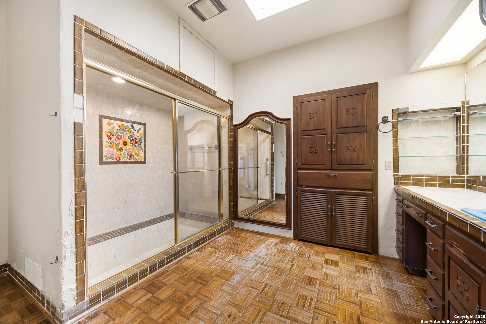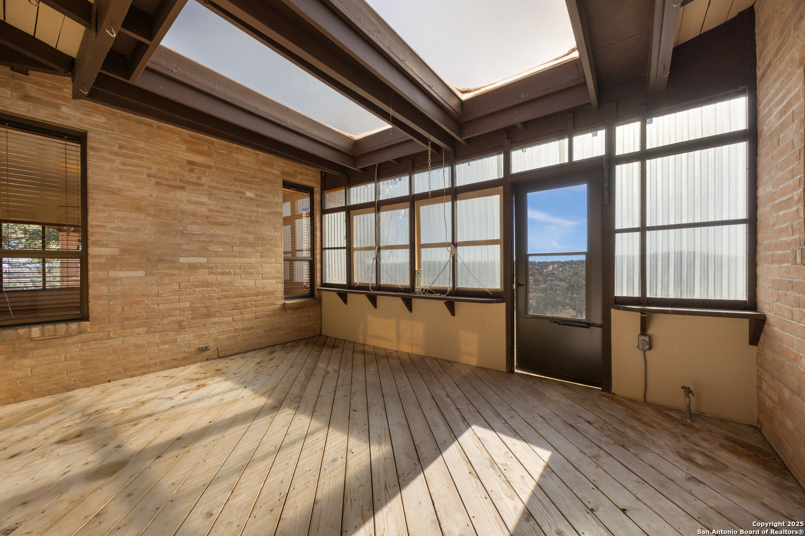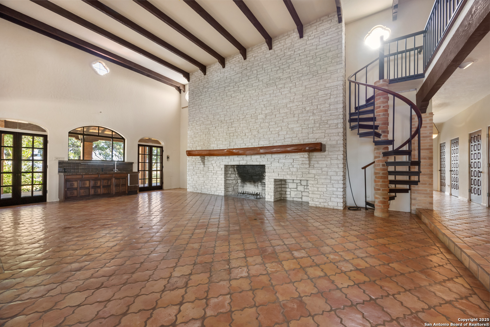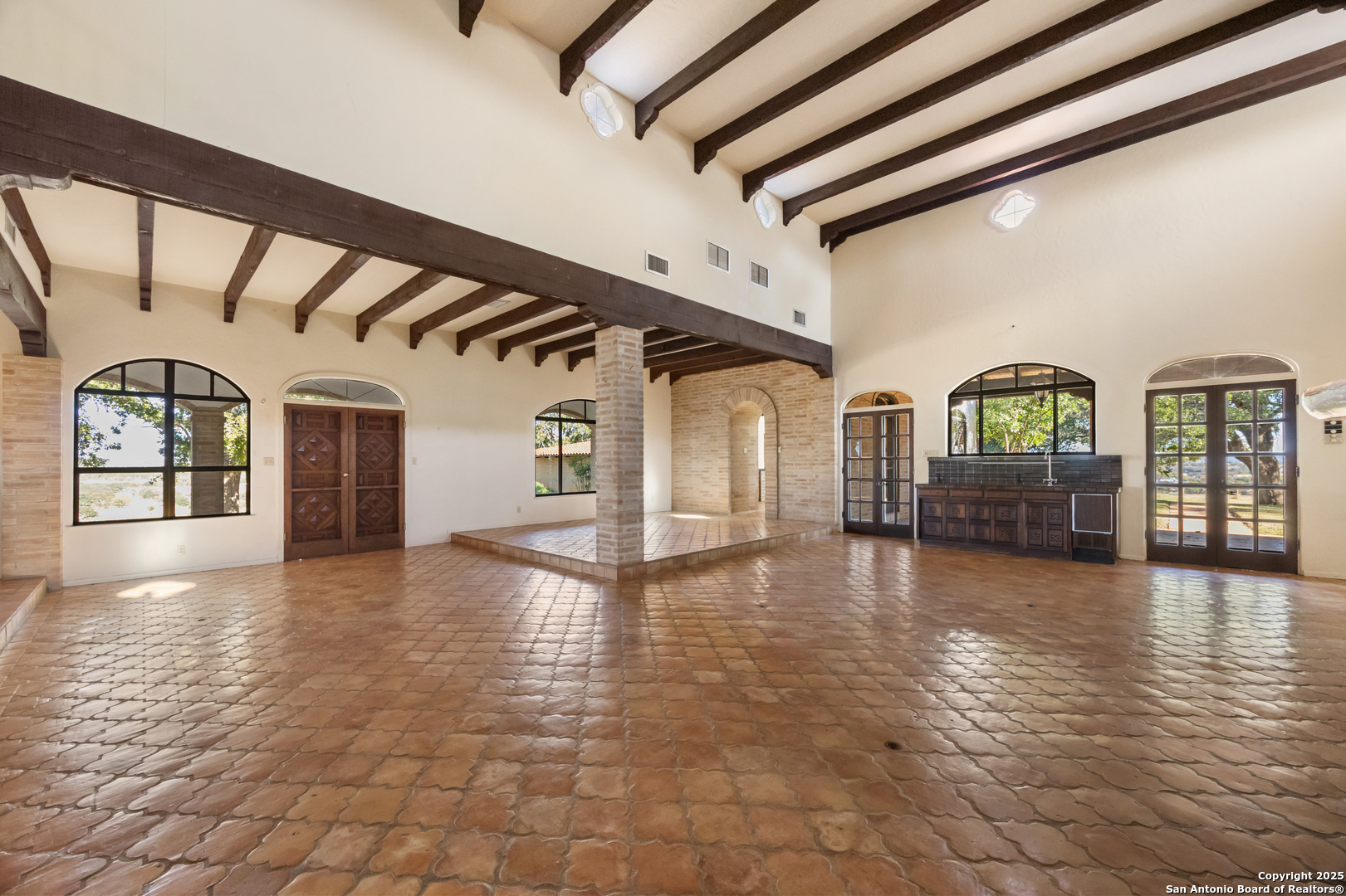 Kerrville's Meek Ranch is a captivating property made up of 257 +/- acres and nestled in the heart of the Texas Hill Country. This property is uniquely situated directly next door to the Comanche Trace golf course and development. The Meek Ranch has been owned and operated by the same family since the 1960s and features 205 +/- ft of Guadalupe River/ Flat Rock Lake frontage, as well as 900 +/- ft of Hwy 173 road frontage. Enter the property through a gated entrance off Bandera Hwy and enjoy the gorgeous landscape as you drive up toward the 4,702 sf Mexican Colonial-style main house, built in 1972. With its hilltop views, mature trees, and nice water features the ranch offers a unique blend of tranquility, privacy and convenience. Conveniently located approximately 50 +/- miles from San Antonio, and only minutes from downtown Kerrville, the property provides easy access to city amenities while maintaining a private and secluded ambiance. The property benefits from a 12-inch waterline along the road and a 10-inch sewer main line along Hwy 173, making this a great property for residential development. The property also holds senior water rights that can also be negotiated for purchase separate from the listing price. Whether you're seeking a permanent residence, a recreational property, cattle operation, weekend getaway, or an investment/ development property, this ranch has it all. The main house was built in 1972 and designed by Lel Medford. It features four bedrooms and three and a half bathrooms. It is a large Mexican Colonial style home that sits on the highest elevation of the property providing panoramic views. The home features custom wood doors and cabinetry, a brick bodega ceiling in the sitting area, two large 60 ft porches on both sides of the house. The main sitting porch was designed to catch the south wind in the summertime and is a great place to entertain guests, or sit and relax while enjoying the view. The interior includes custom cabinets built and designed by Kerr Crafters, hand-painted backsplash tiles in the kitchen and bathrooms, imported saltillo tile, tall ceilings, three fireplaces, one with imported Boquillas Canyon rock, a Juliet balcony with spiral staircase, a sunroom/ greenroom, and more. The main room features a rock fireplace with a cypress mantle hand cut out of the Guadalupe River and ceilings over 20 ft tall. The master bedroom features some of the best views of the ranch, with french doors that lead to the porch. There is also an attached bathroom with two walk-in closets, sunken tub/ shower combo, a sauna, and custom painted tile work in the shower. The garage has a small bonus room and bathroom, as well as four large walk-in closets that were used for holding tools, the hot water heater and additional storage. Other improvements on the Meek ranch include a 2/2 Foreman's house, three barns, two corrals, a loading chute and working chute for cattle, a historic log cabin that was a mid 1800s schoolhouse, upgraded with a cypress shingle roof and an added fireplace. This historic house is a novelty piece that was brought in and set on concrete foundation. The pump house has an attached room that is great for gardening and storage. The property is partially high fenced and cross fenced. With 205 +/- feet of river frontage along the Guadalupe River (Kerrville Lake), this ranch provides great outdoor recreational opportunities such as fishing, kayaking, swimming, or boating. The Guadalupe River frontage is approximately two acres out of the 257 +/- acres on the other side of Hwy 173. A majority of the ranch could be irrigated with the water rights from the Guadalupe River. The water rights are not included in the sale of the ranch but can be negotiated for purchase. Underground water lines run to risers throughout the ranch. Other water features include one large stock tank and one small tank filled by the river that sits next to the domestic water well.