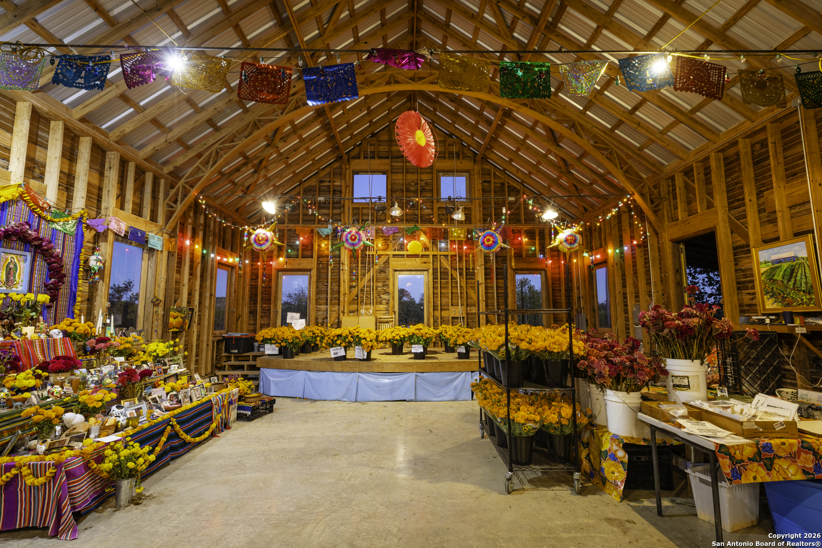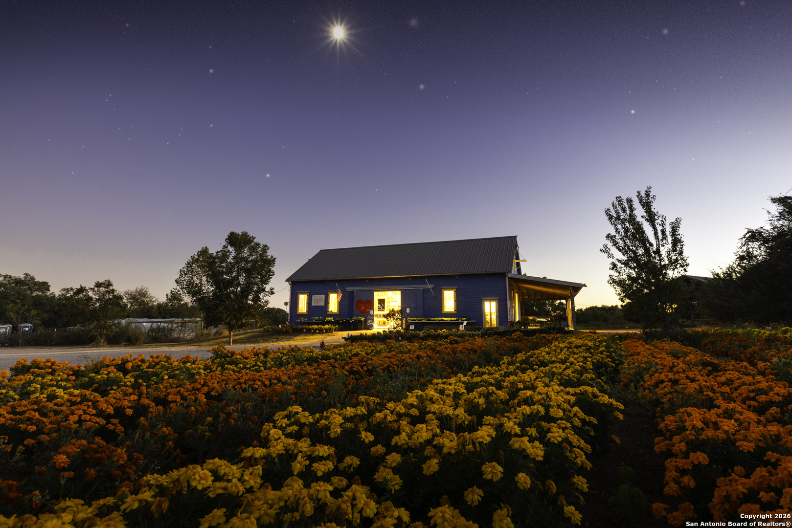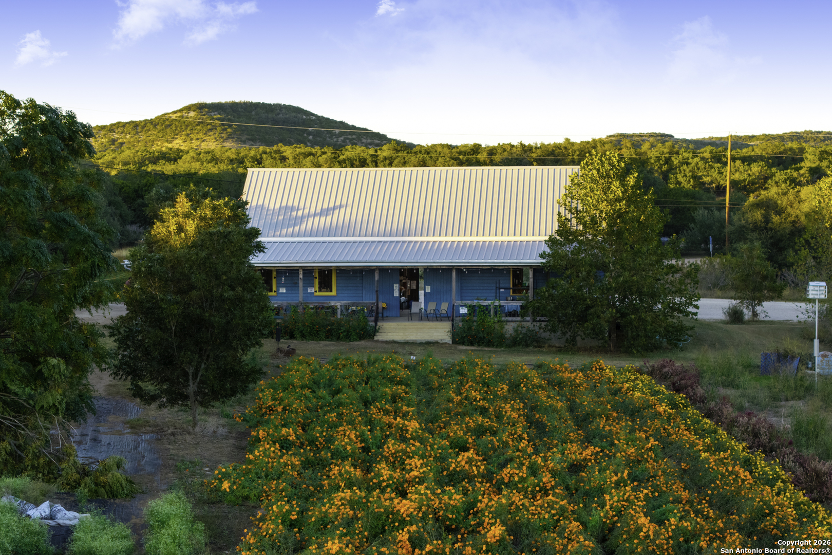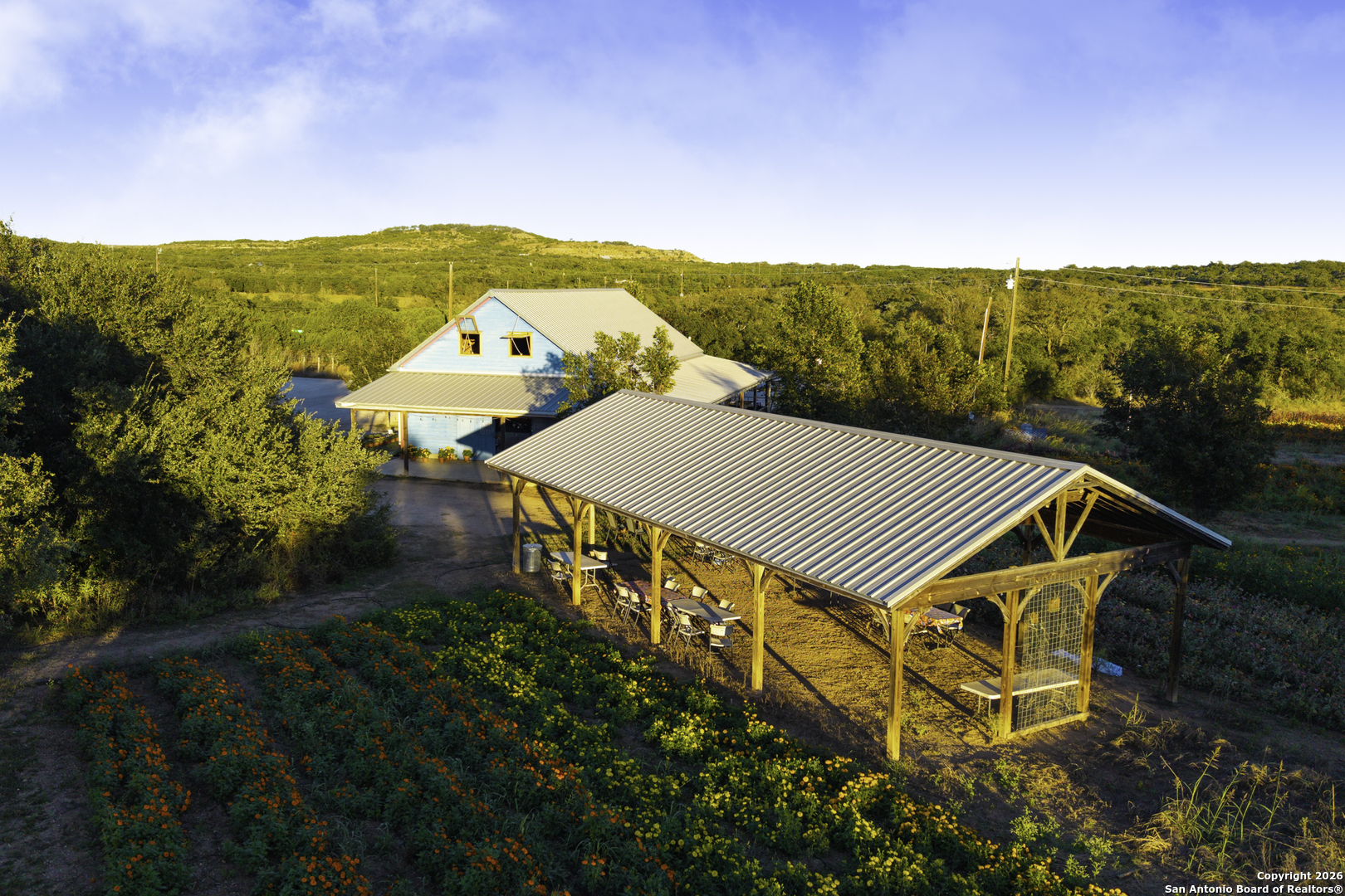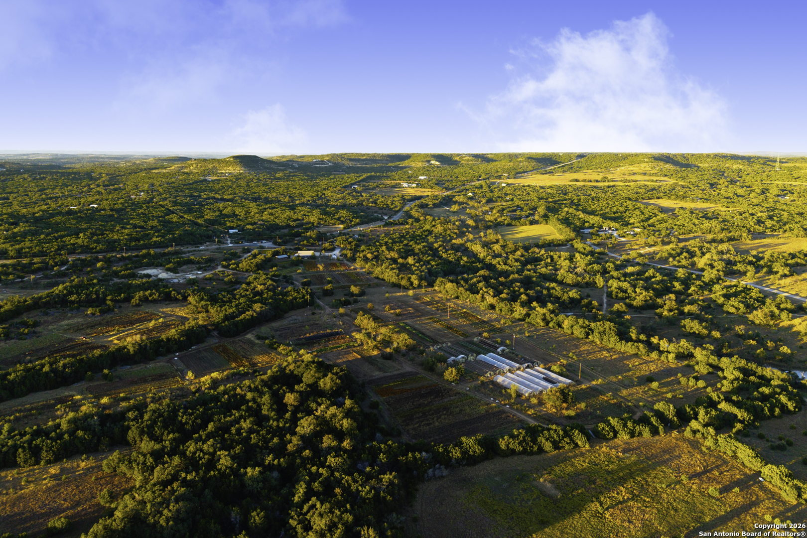 Arnosky Family Farms is a rare 60 acre property in the heart of the Texas Hill Country-an established Blanco County flower farm with deep community roots. Positioned with roughly 900 feet of combined frontage at the corner of RR 165 and FM 2325, it offers strong visibility and significant commercial potential while still feeling like a peaceful working farm. The property has been featured in Southern Living, Texas Highways, and other publications. Location: ~10 minutes to Blanco, ~20 minutes to Dripping Springs, and ~45 minutes to Austin. Land/Operation: Long operated as a Certified American Grown flower farm with deep, cultivated soils, production greenhouses, orchards, and paper shell pecans; appr 20 acres in active cultivation and ~40 acres of open green space. Diverse habitat with hardwoods and signature live oaks, multiple paddocks, and abundant wildflowers along an old rock wall. Per seller, land has been farmed for 150+ years and was part of the historic Peyton Colony. Improvements: The "Blue Barn" (~30' 60') with broad rear porches overlooking the fields, plus a stage and excellent acoustics; adjacent ~24x40 pavilion strung with lights for markets, tastings, weddings, and gatherings. Utilities in place across the acreage. Seller reports no restrictions; buyer to verify. Use potential includes continued agriculture, event/hospitality, tasting room concepts, boutique lodging, restaurant, private estate/compound, or a blend of uses (subject to buyer due diligence). Shown by appointment only. Buyer to verify all information including utilities, restrictions, acreage, and development feasibility.