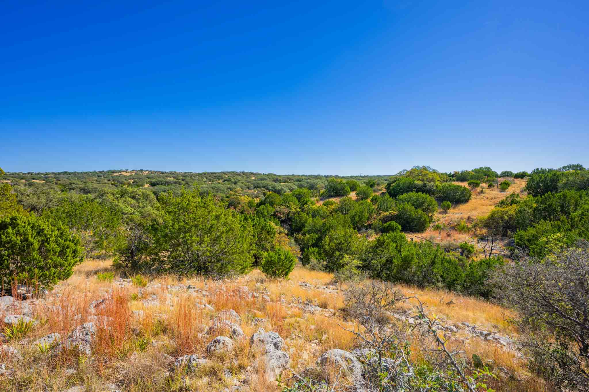 The landscape of Contrary Bluff Ranch features a well-balanced mix of live oak, shin oak, Spanish oak, and cedar spread across elevated hilltops and oak-studded flats. A stretch of the dry Contrary Creek drainage runs through the northeastern portion of the ranch. Its varied terrain—from level ground to elevated vantage points—enhances both the usability and visual appeal of the land for wildlife, livestock, and a wide range of outdoor activities.