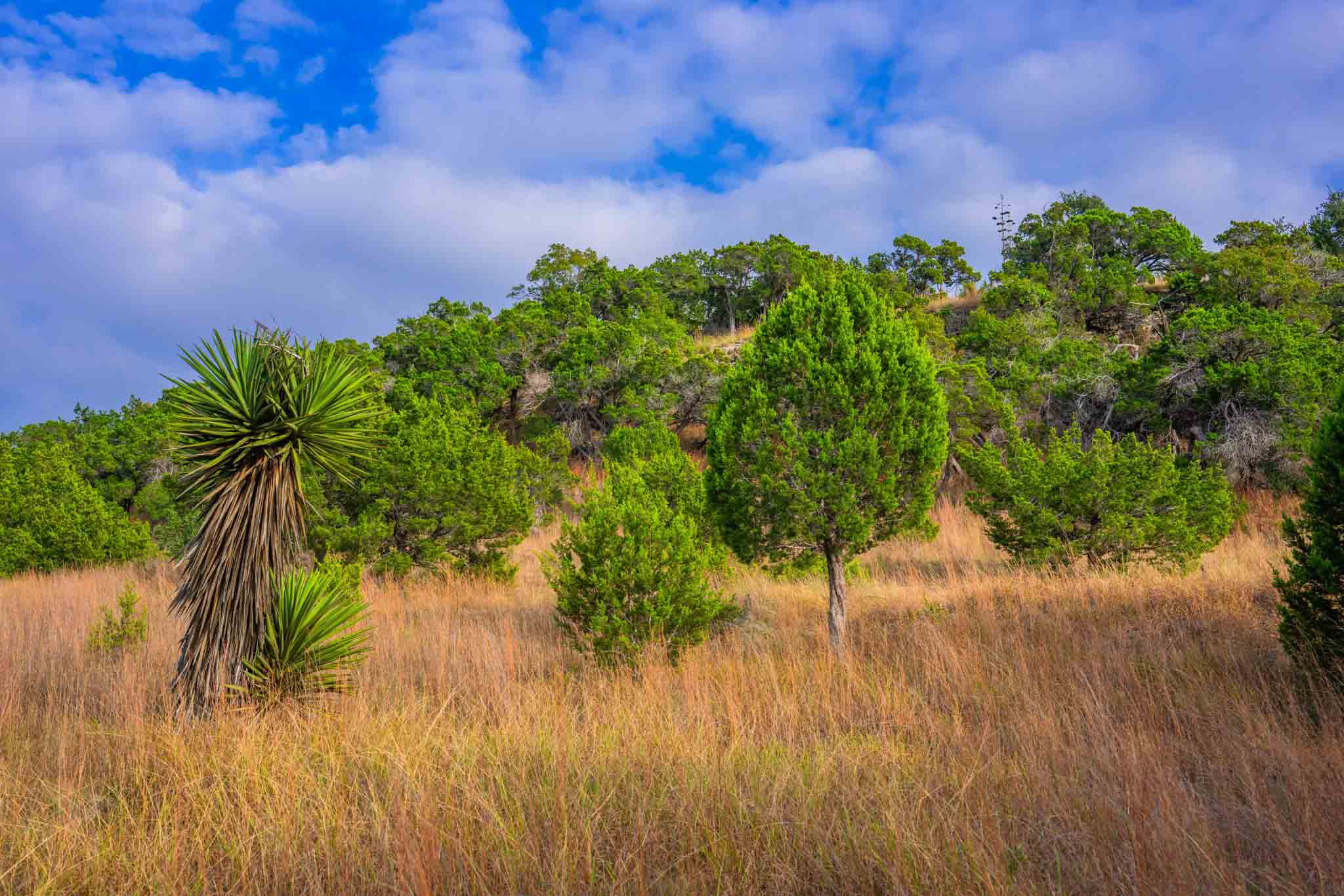 Adobe Springs Ranch is a premier property with 77.59± acres of dramatic Hill Country terrain, combining hilltops, shaded hardwood bottoms, and views that will command your attention. Bottomland areas are dotted with mature post oaks, while the higher elevations feature live oaks, Spanish oaks, and native cedar. Thick stands of native grasses add texture and support wildlife, contributing to the ranch’s natural and ecological richness.