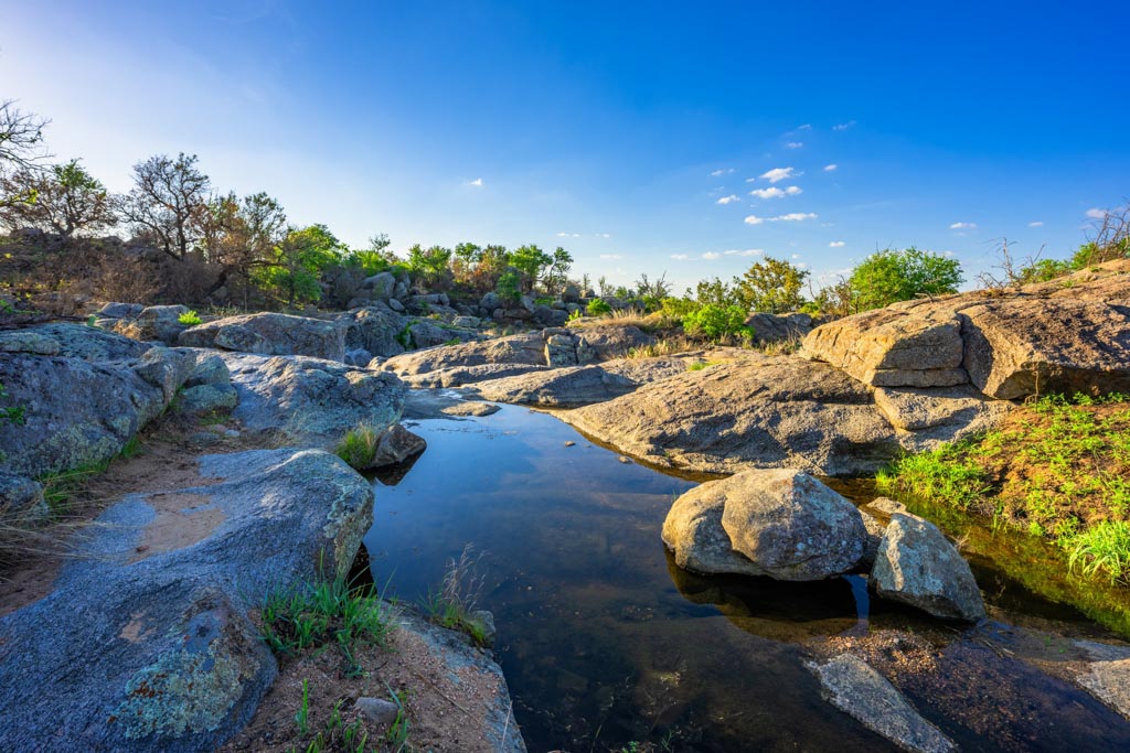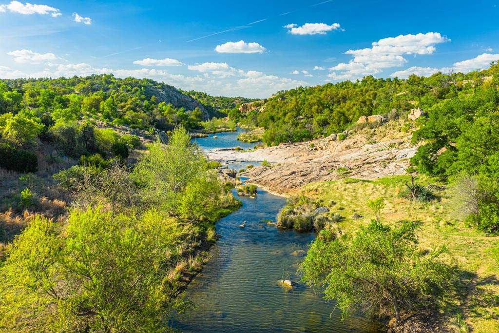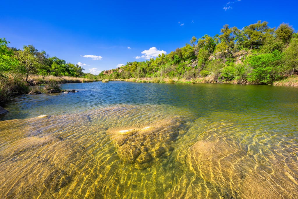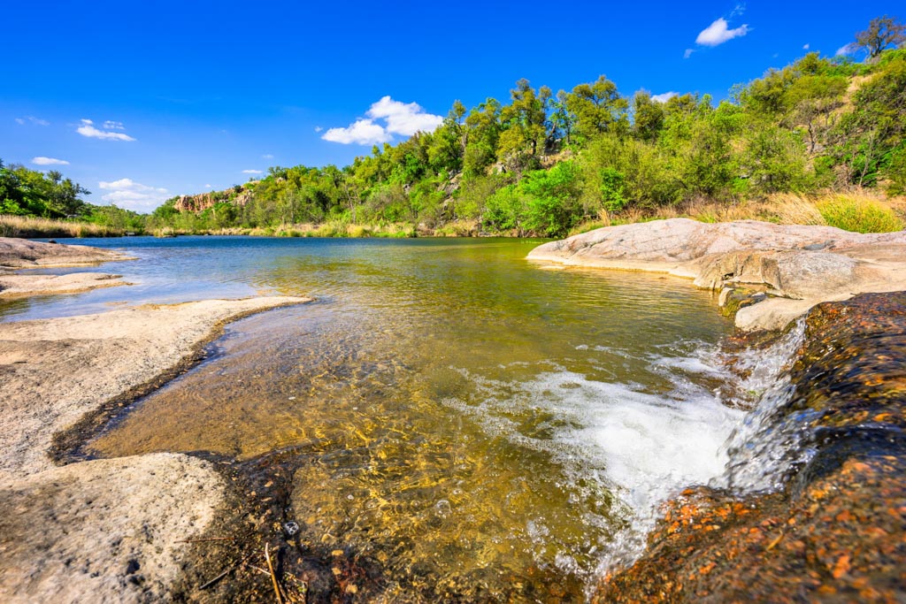 Crabapple Creek Ranch offers varied and scenic topography with elevations ranging from approximately 1,500’± to 1,760’± above sea level. The rolling terrain offers commanding Hill Country views, including majestic vistas of Enchanted Rock. Numerous draws lined with mature hardwoods and intermittent springs, resulting in gorgeous bottomland with deep soils. Prized Crabapple Creek meanders through the property on both sides for 2,790’± and includes a tremendous combination of beautiful holes of water and small, rapid areas that have carved through granite slabs, creating a beautiful live-water setting.
