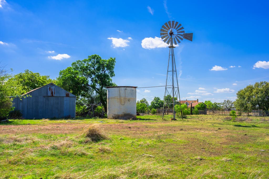 There are 4 water wells across the ranch. Several windmills are not currently in operation. One well near the ranch house has a submersible pump, and another operational solar well is near the center of the ranch.
