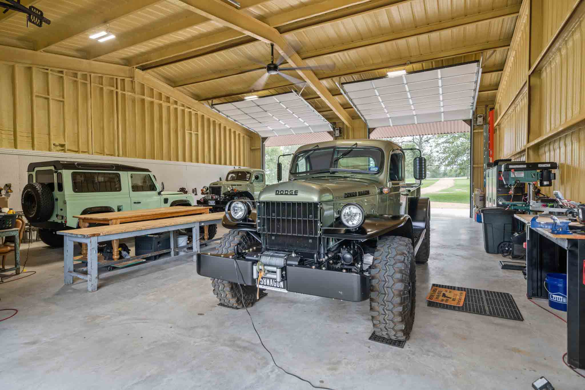A 3,250± sf metal barn was completed in 2022. It features four oversized garage door bays and is spray-foam insulated. The barn is ideal for a car collection, workshop space, extra storage, and more. A built-in office/flex space is finished and includes central heating and air conditioning.