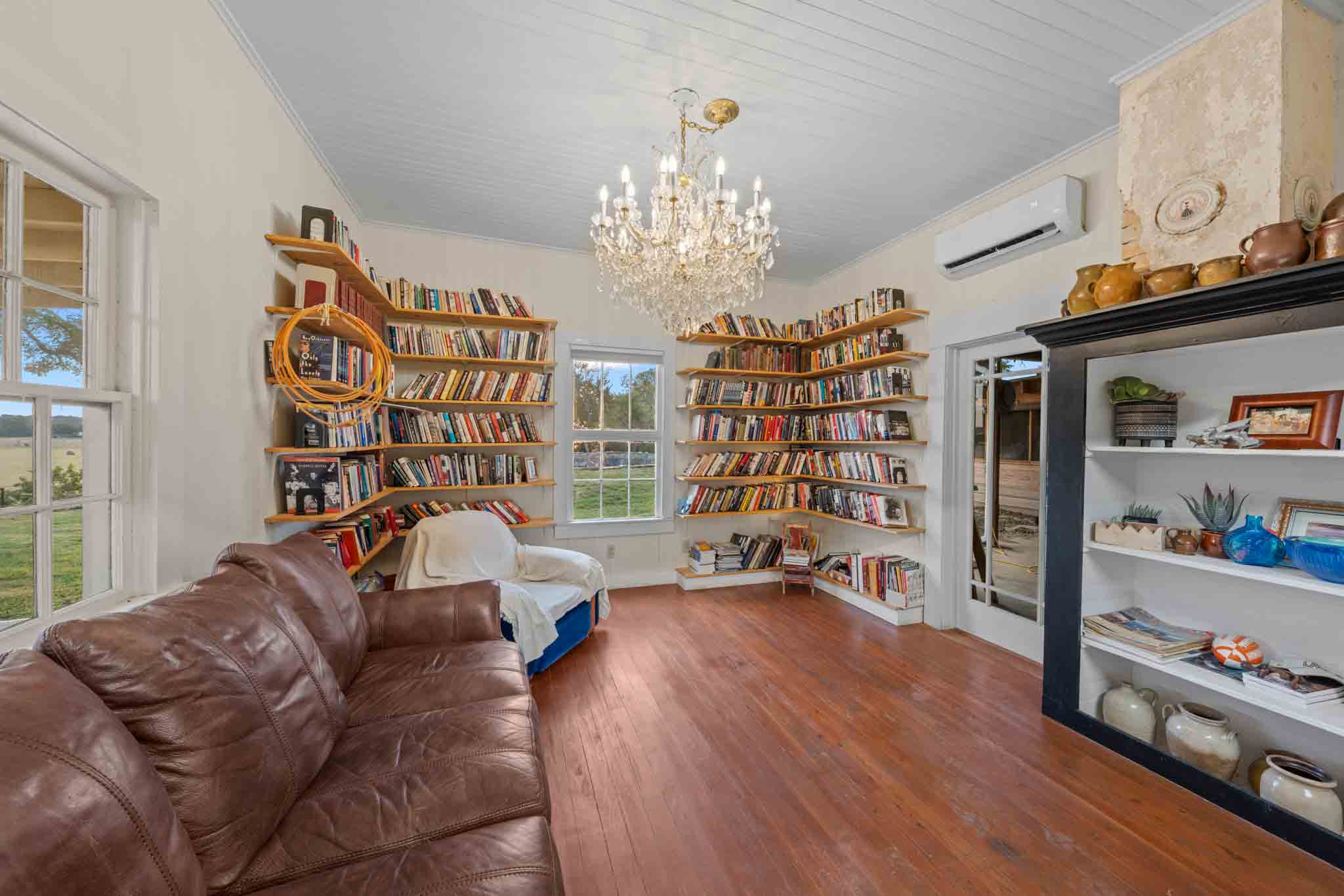 Set against the backdrop of rolling hills and breathtaking sunsets, Rock Haven Ranch embodies the quiet charm and history of the Comfort area. The residence began as a hand-built rock structure in 1862 and evolved over generations, with thoughtful additions that create an “L” shaped layout offering warmth and versatility. The home blends original character with inviting living spaces, a workshop, office, and library—once said to be the first kindergarten building in Comfort. Every element, from the stonework to the wide porches, reflects the craftsmanship and spirit of early Hill Country living.